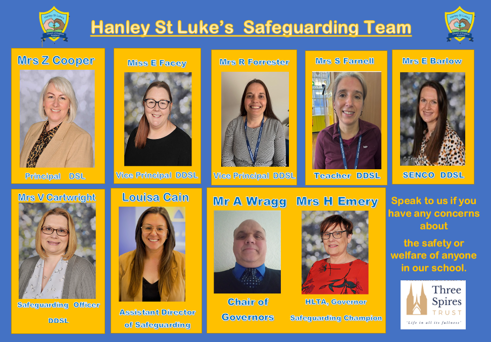 If you have any serious concerns about your child, another student or a member of staff at Hanley St Luke's, please do not hesitate to contact a member of our safeguarding team, who will be able to provide you with the best advice and help using the appropriate degree of confidentiality.