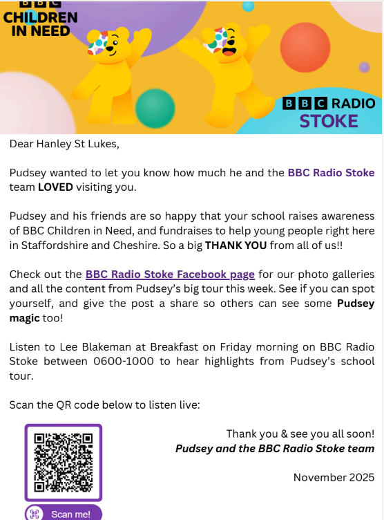 A huge thank you to BBC Radio Stoke for helping make the visit so memorable.