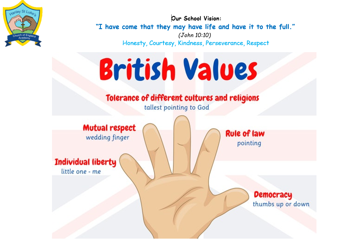 At Hanley St Luke’s, we are committed to developing and promoting British Values throughout our school and curriculum. As Lord Nash stated,