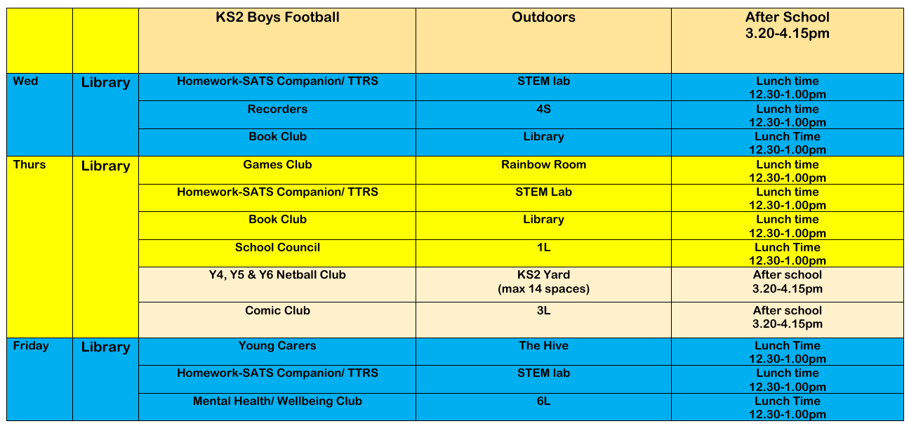 Our clubs include netball, coding club, STEM club, art club, comic club and much, much more. These activities allow children to explore new skills, discover hidden talents and enjoy learning in a fun and supportive environment. For more detailed information, please refer to the timetables below or speak to a member of the school office.